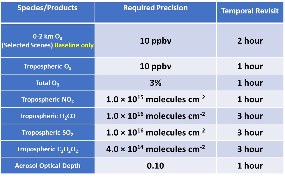 MEASMA-GEO Instruments - TEMPO Baseline and Threshold Data Products